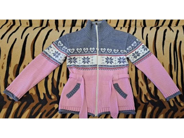 Кофта-туника с пояском с узором снежинки на 4-6лет, б.у в отличном состоянии, теплая и удобная. П/о груди-32,5см, длина изделия-43см, длина рукава-38.5см. Вышлю Белпочтой наложенным или по предоплате.