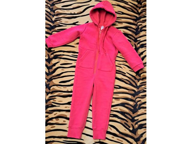 Комбинезон малиновый демисезонный, р.104 (4-5лет), б.у в отличном состоянии, 80%-хлопка, 20%-полиэстера, рекомендована стирка при t не более 40С, П/о груди-34см, длина изделия-86см, длина рукава-35см. Удобный и теплый детский демисезонный комбинезон с капюшоном и начесом. Комбинезон из футера с начесом создан из мягкого теплого трикотажа премиального качества пенье, трехниточный футер с начесом, удобный и практичный для повседневной носки.
