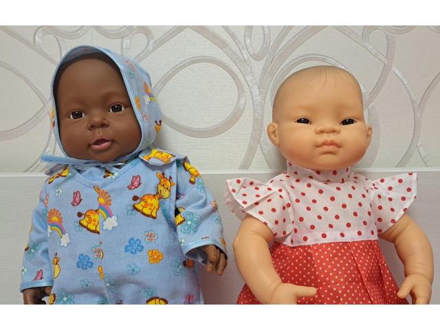 1)Пупс Реборн 40см, новая, корейской национальности, цвет светло-бежевая девочка с половыми признаками, реалистичная, можно купать, подвижные части тела, бренд MINILAND. К нему прилагается комплект одежды-платье нарядное.