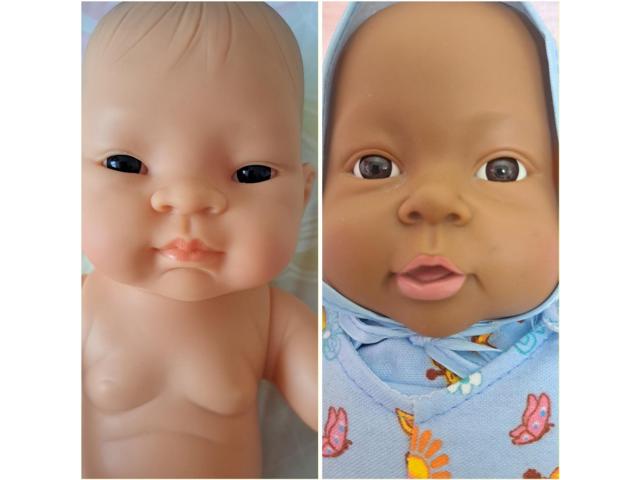 2)Пупс Реборн 40см, новый, темный мальчик с половыми признаками, реалистичный, можно купать, подвижные части тела, бренд MINILAND. К нему прилагается комплект одежды для новорожденного: ползунки, кофта, чепчик.