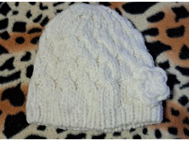 Шапка белая с цветком на 4-6лет, б.у, вязанная, в отличном состоянии. Вышлю Белпочтой наложенным или по предоплате.