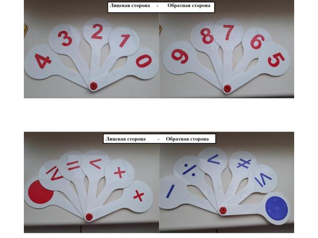 Веера цифр от 1-10 и знаков математических, двухсторонние, пластиковые, б.у в хорошем состоянии. Цена за 1 веер. Вышлю Белпочтой по предоплате на моб.телефон.