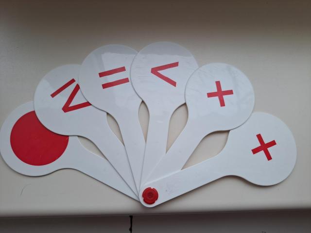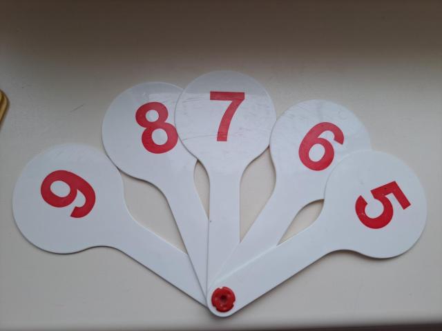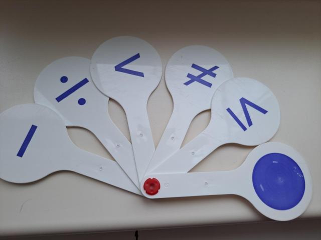 Веера цифр от 1-10 и знаков математических, пластиковые, б.у в хорошем