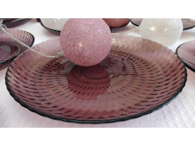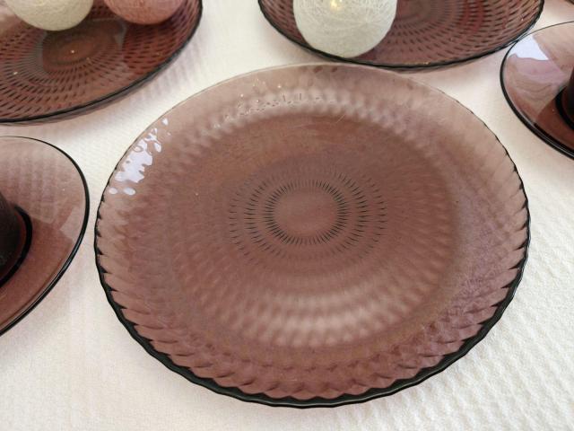 Кроме этого, покупатель может приобрести 6 десертных тарелок из цветного закалённого стекла общей стоимостью 20 рублей. Серия «Идиллия» лилак. Диаметр каждой тарелки составляет 19 см.