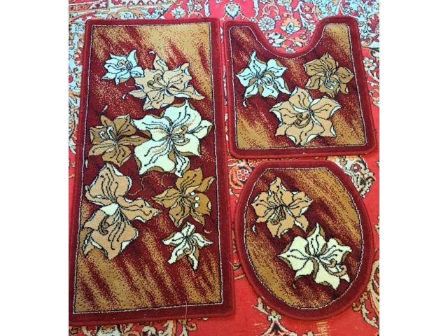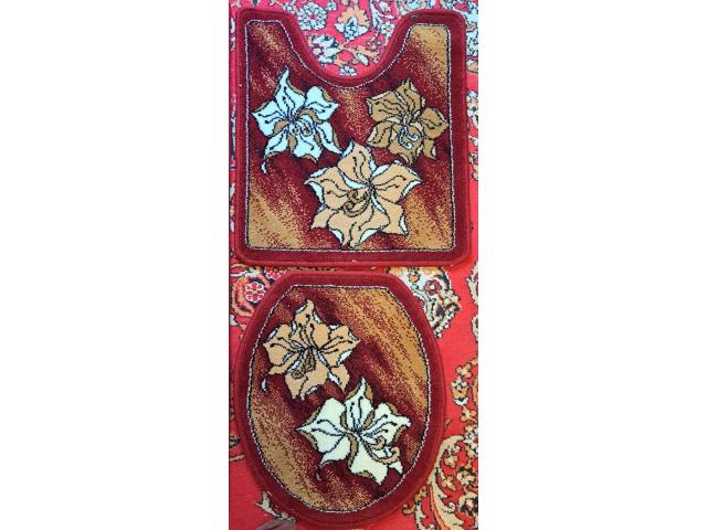Комплект ковриков жаккардовых двухполотных в ванну и туалет-3шт, новый, красивый цветочный принт, размер дорожки-49-175см, размер коврика под унитаз 56-49см. Вышлю Белпочтой наложенным по частичной предоплате или по полной предоплате простой посылкой.