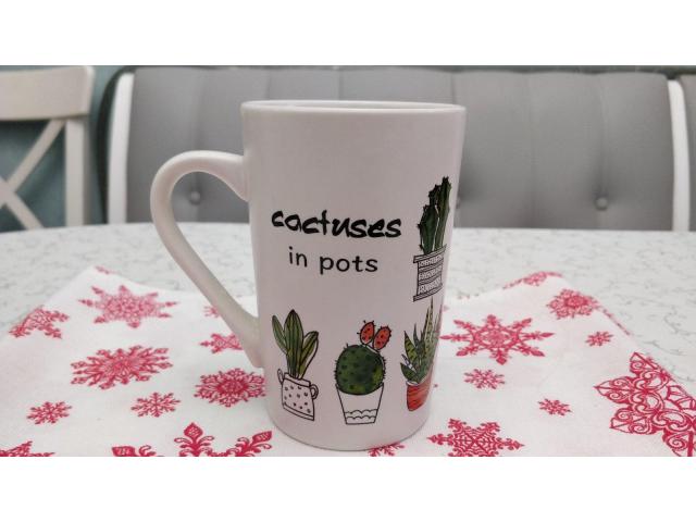 - керамическая кружка с изображением кактусов на всей поверхности изделия объёмом 400 мл стоимостью 6 рублей (фотографии №4,5);
