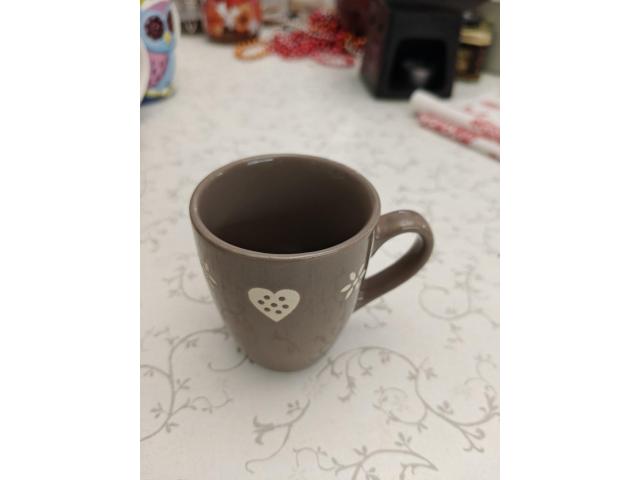 - керамическая чашка с изображением сердечка и цветочка объёмом 80 мл стоимостью 5 рублей (фотографии №8,9).