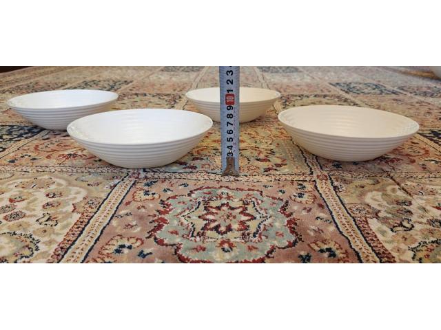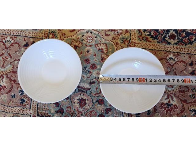 - на фотографиях №6,7 предложены суповые тарелки диаметром 20 см и высотой 5,5 см в количестве 4 штук общей стоимостью 35 рублей;