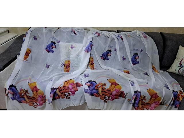 Тюль в детскую комнату, б.у мало совсем, в отличном состоянии. Размеры: ширина-284,5см, высота-159см. Низ тюли с утяжилителем. Тюль короткий, вуаль с мультяшным Винни-Пухом (Дисней).