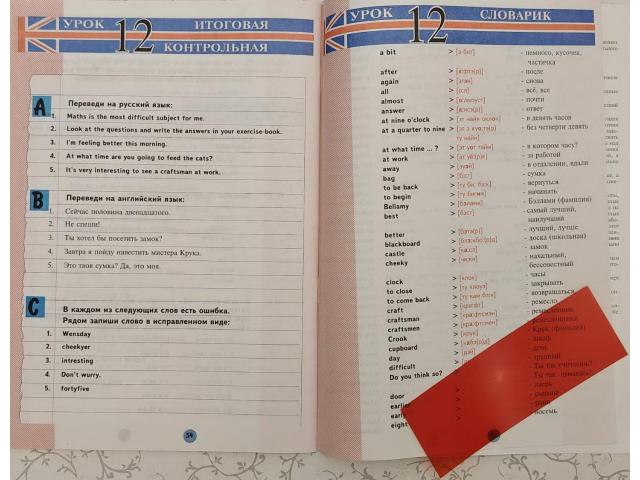 Прилагающийся пластиковый красный светофильтр обеспечивает удобство в изучении дисциплины: фрагменты текста напечатаны красным цветом и, положив фильтр на участок тетради с текстом красного цвета, после ответа учащийся cдвигает красную линейку в сторону и проверяет правильность выполненного упражнения (фотографии №4,5). К сведению, имеется видео о порядке пользования светофильтром.