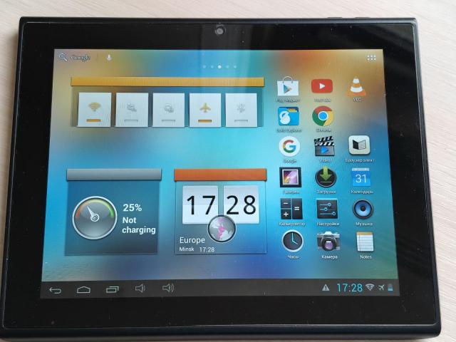В планшете установлены все необходимые приложения и утилиты для прослушивания аудио-файлов, просмотра видео-контента, чтения электронных книг. Планшет имеет 8-дюймовый экран хорошего качества (экран без дефектов, - покрыт защитной плёнкой), 16 Гбайт встроенной памяти, 1 Гбайт оперативной памяти; имеются слоты для карты памяти, SIM-карты (3G), порты HDMI, USB, HOST, а также разъём mini jack 3,5 мм для подключения наушников. Интерфейс русифицирован.