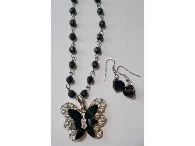 2)Комплект: цепочка с кулоном Бабочка и серьгами, длина цепочки- 19*2=38см, размер Бабочки-3.5-3.0см. Цена-15руб