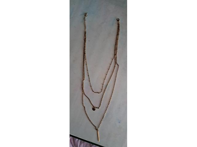 4)Цепочка тройная под золото (бижутерия), новая, длина-33,5см+3см(запас), Китай. Цена-15руб