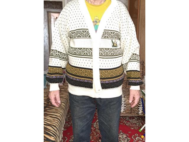 Кардиган толстый и теплый, мужской, р.54-60, б.у в отличном состоянии. Длина изделия-73см, ширина плеча-23,5см, длина рукава-55,5см, полуобхват груди-67см. Вышлю почтой наложенным или по предоплате.