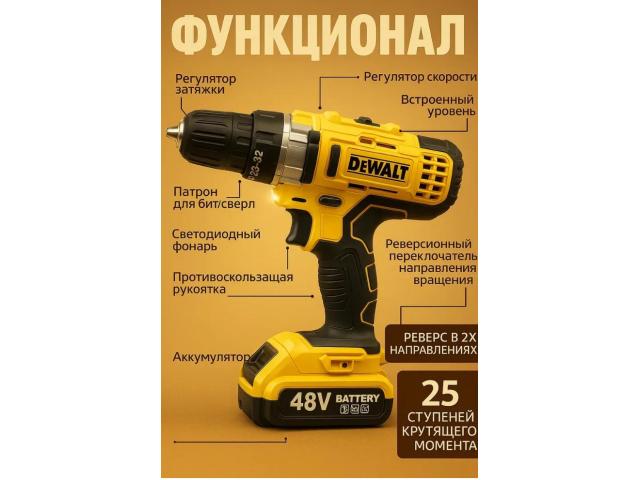 DeWALT в комплекте 2 аккумулятора, полный комплект, подойдёт на подарок, продаю за ненадобностью. Все характеристики и описание на последних фото.