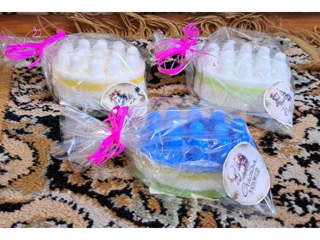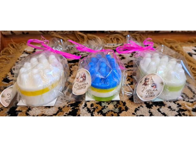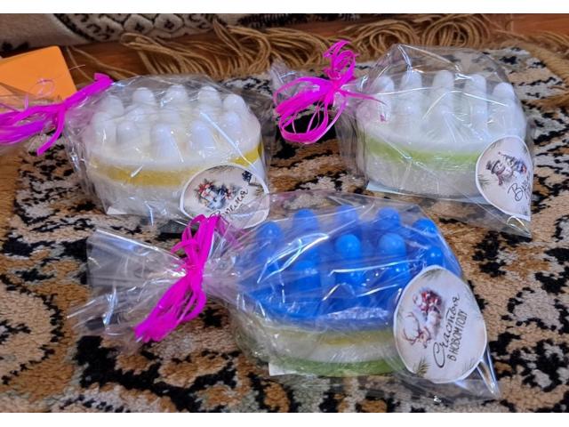 Сувенирное массажное мыло ручной работы, мини-открытка в подарок, вес 125-140 грам.