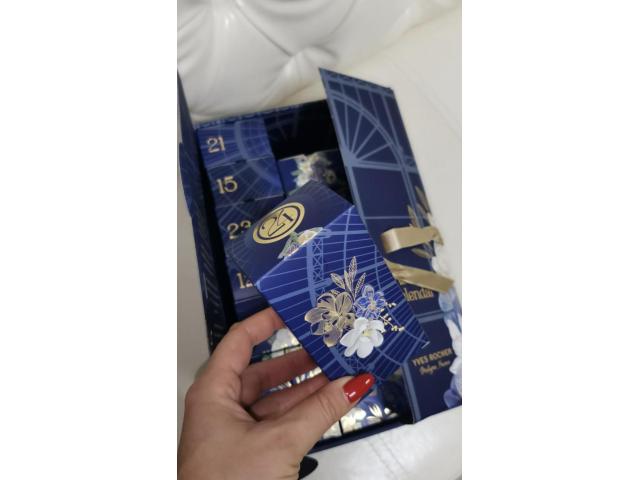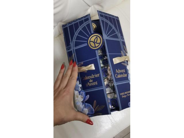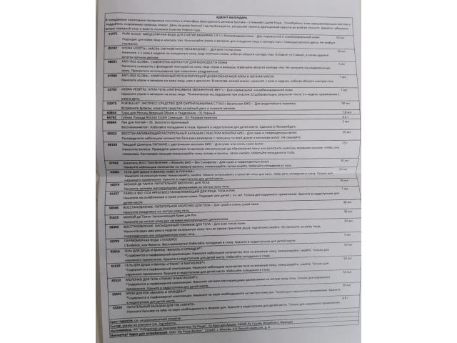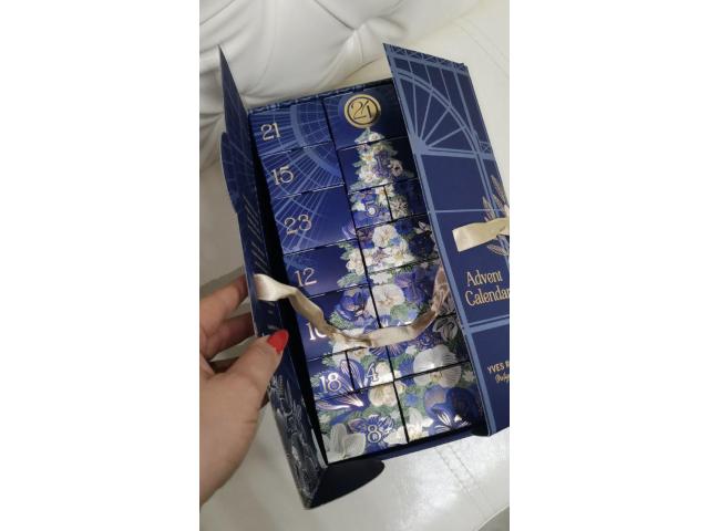 Адвент календарь. На фото есть перечень косметики и декоративной и уходовой.