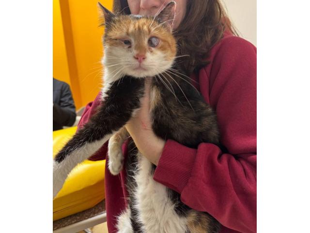 Очень пугливая и осторожная девочка. Глазки такими стали явно из-за болезни. Совсем слепая, с кучей глистов и блох она, никому не нужная, выживала на холодной улице... Чудом удалось её отловить, и сейчас Булочка в безопасности, была на осмотре, ей провели необходимое обследование. Сделали узи и сдали все анализы, по которым всё неплохо.