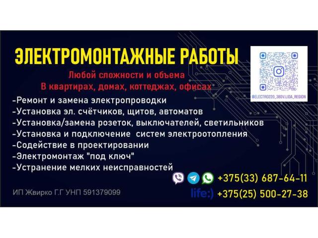 Электромонтажные работы(электрик) в квартирах, новостройках,офисах, частных домах ,дачах, банях. Установка и подключения системы электро отопления и ГВС под ключ. От устранения неисправности до полной замены проводки.